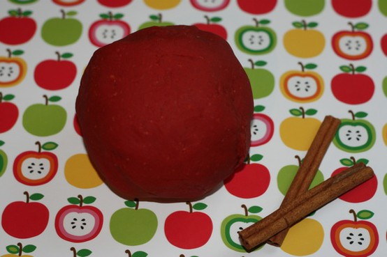 Painting an "apple" out of a paper plate and red paint. Mix some cinnamon in with the paint, or sprinkle on top, to make it smell like apple pie...yum! (from Preschool Daze)